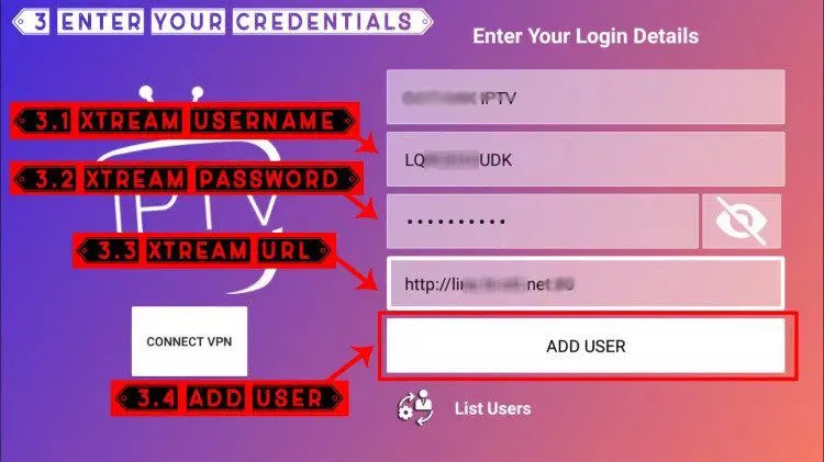Step 3: Enter the login details that we have provided you after you get a subscription with us